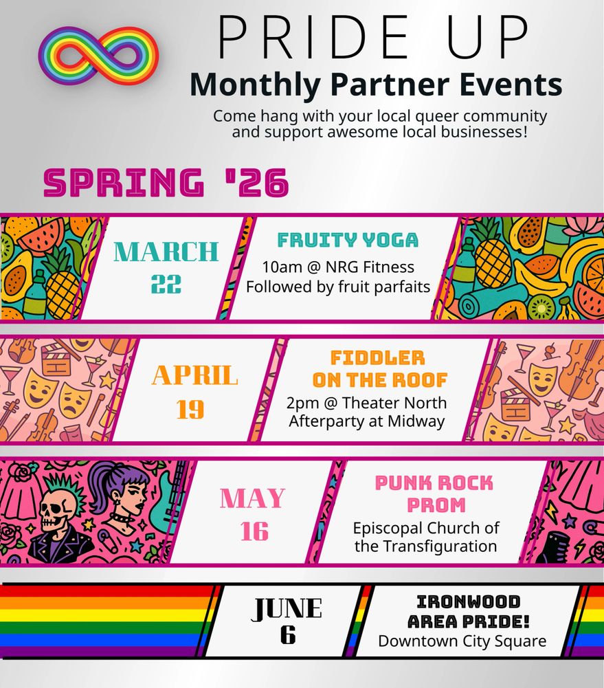 Pride UP Monthly Partner Events Spring 2026